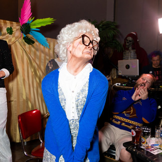 Of course the real standouts of the evening were the audience members. So many people dressed up as fraidy ole ladies and fragile old gents I felt like I was in an AARP commercial. Or a South Florida nursing home minus the rampant syphilis.